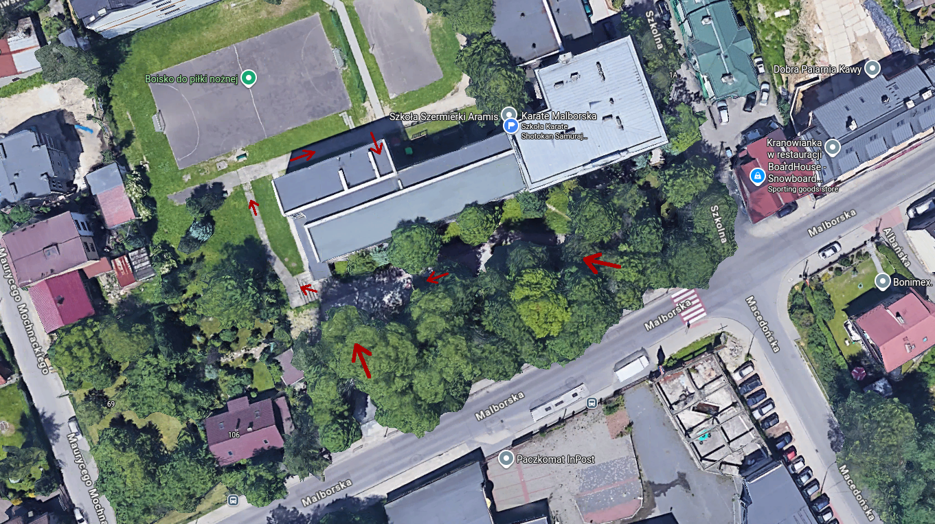 (mapka pokazująca wejście na salę) - w czwartki w Klubie Wola Duchacka